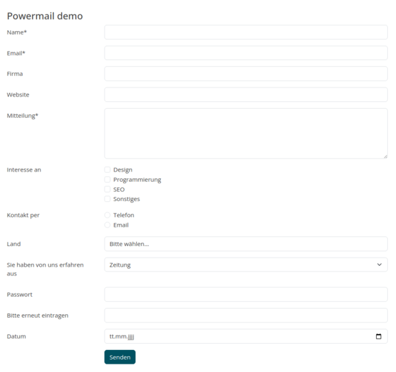 Ein Demo-Formular mit der powermail-Extension.